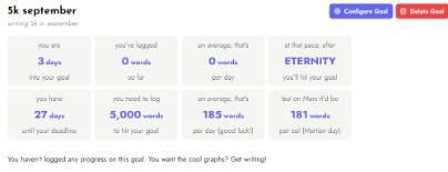 Technically no. You could track your own word counts if you like! TrackBear has a lot of nifty statistics to see though, and makes it easier to see how your friends and fellow writers are doing too.What if I want to set myself a bigger target than the current month on Trackbear?