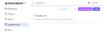 You can absolutely do this! All you’ll need to do is set yourself a goal, and as long as you’ve joined the leaderboard for that month, any progress you make towards your goal will automatically count towards the WriteThatFic trackbear leaderboard.How do I join the trackbear Leaderboard each month?